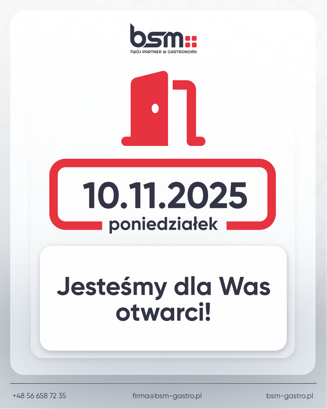 Miło nam poinformować, że w poniedziałek, 10 listopada pracujemy jak zwykle — BSM jest otwarte!