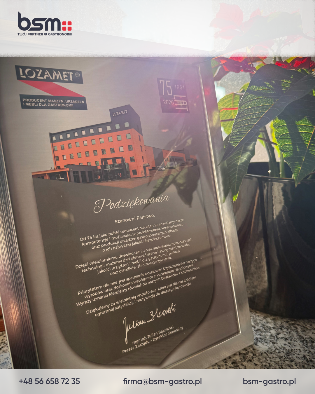 Jako BSM otrzymaliśmy wyjątkowe podziękowanie od firmy Lozamet, która w 2026 roku świętuje 75-lecie działalności.